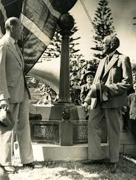 - Foto von Fisk (links) mit dem ehemaligen Premierminister Hughes bei der Enthüllung des Fisk Memorials (1935).