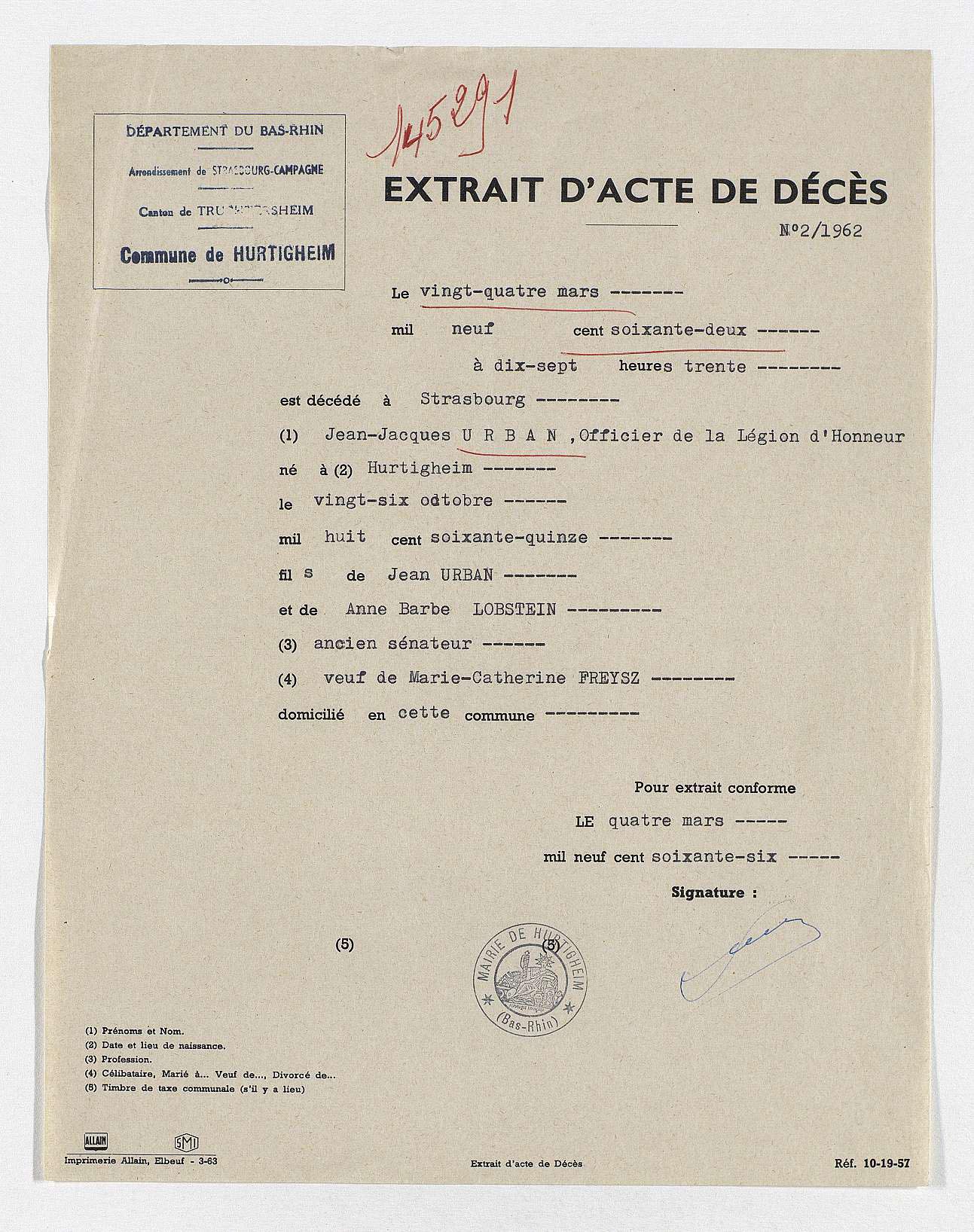 | Lieu de naissance | Hurtigheim (District de Basse-Alsace) |